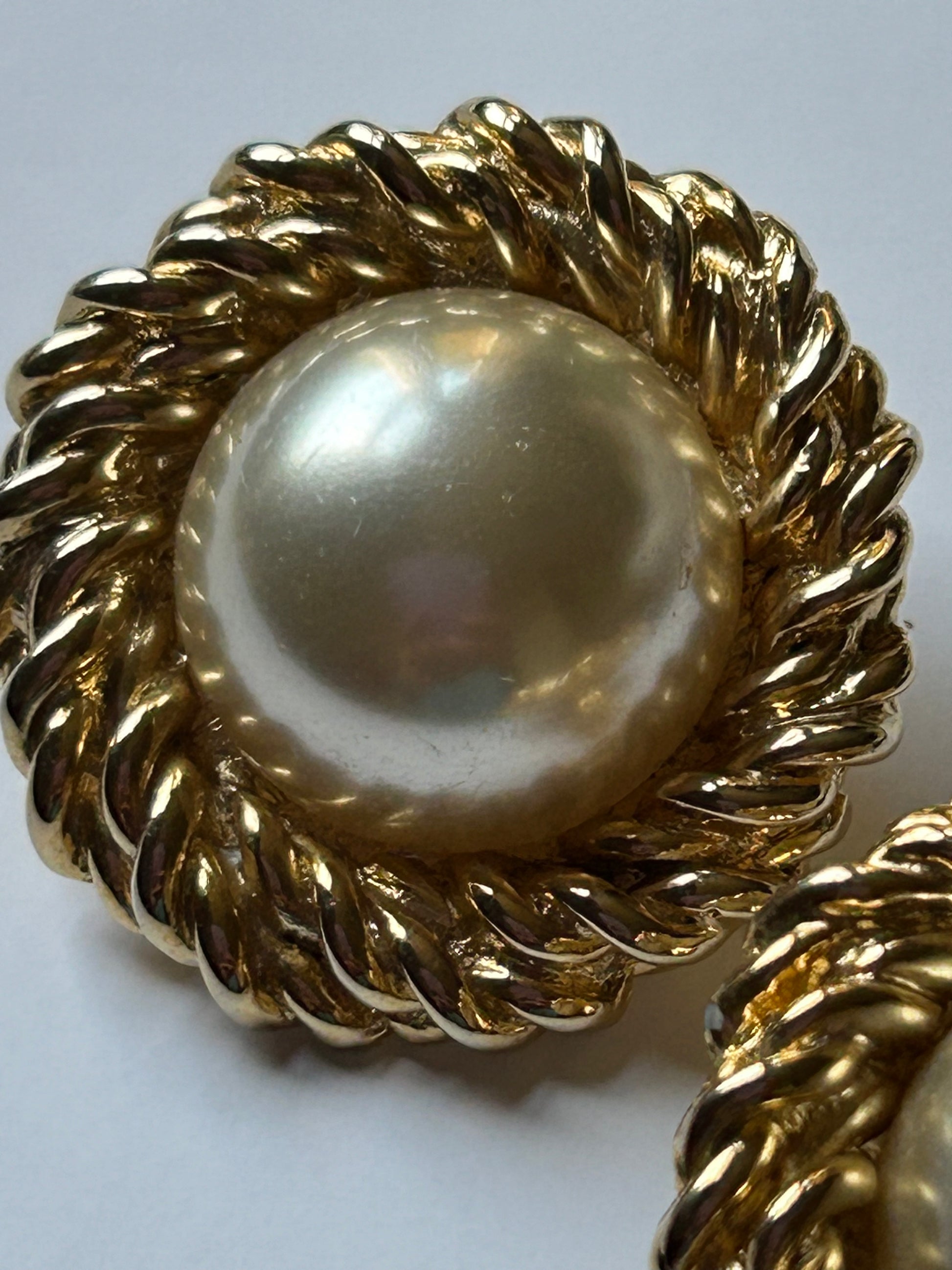 Add to your vintage earrings collection these stunning faux pearl clip on by David Grosse.