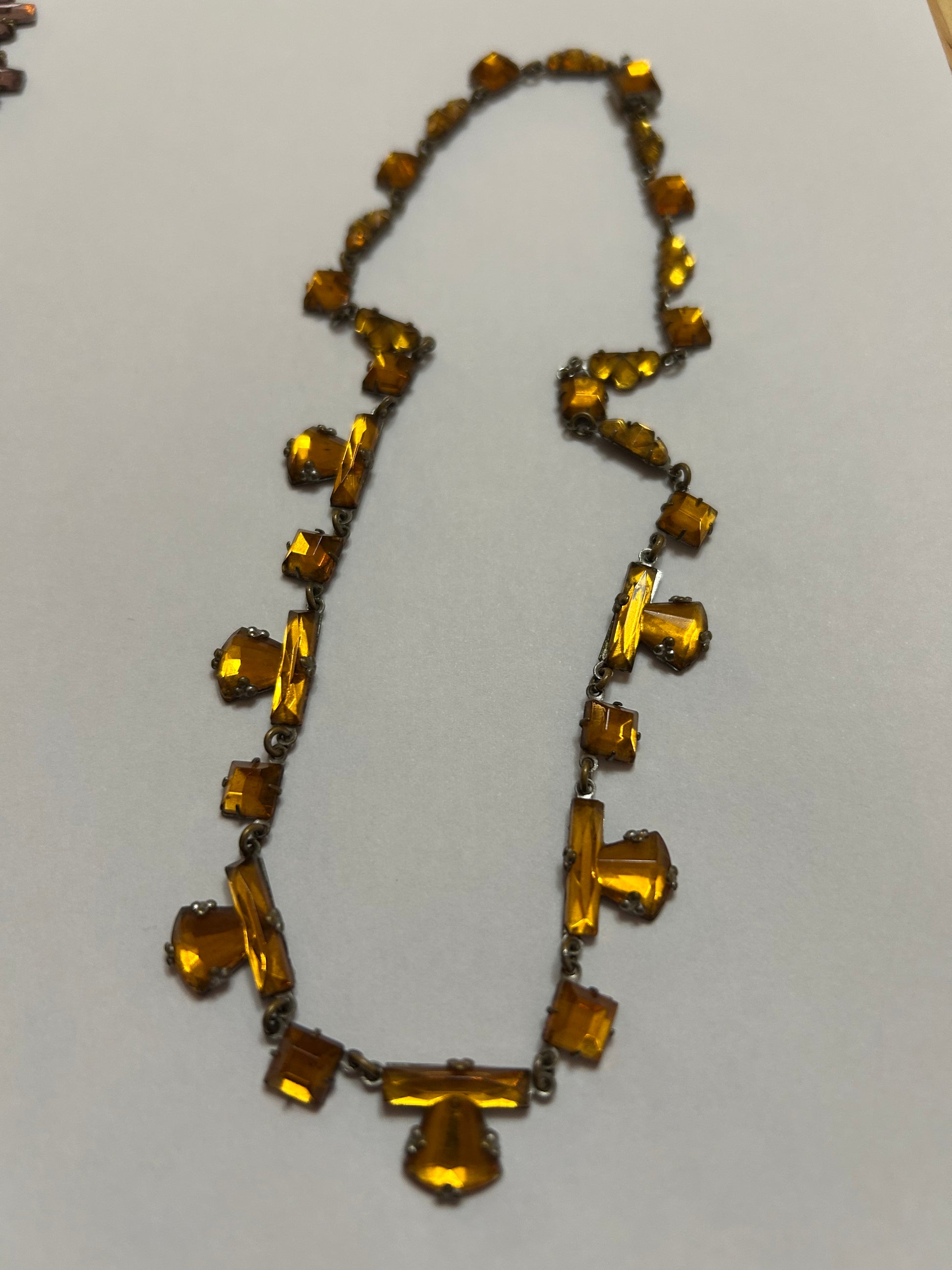 Antique Art Deco amber coloured Vauxhall Glass necklace 1930s
