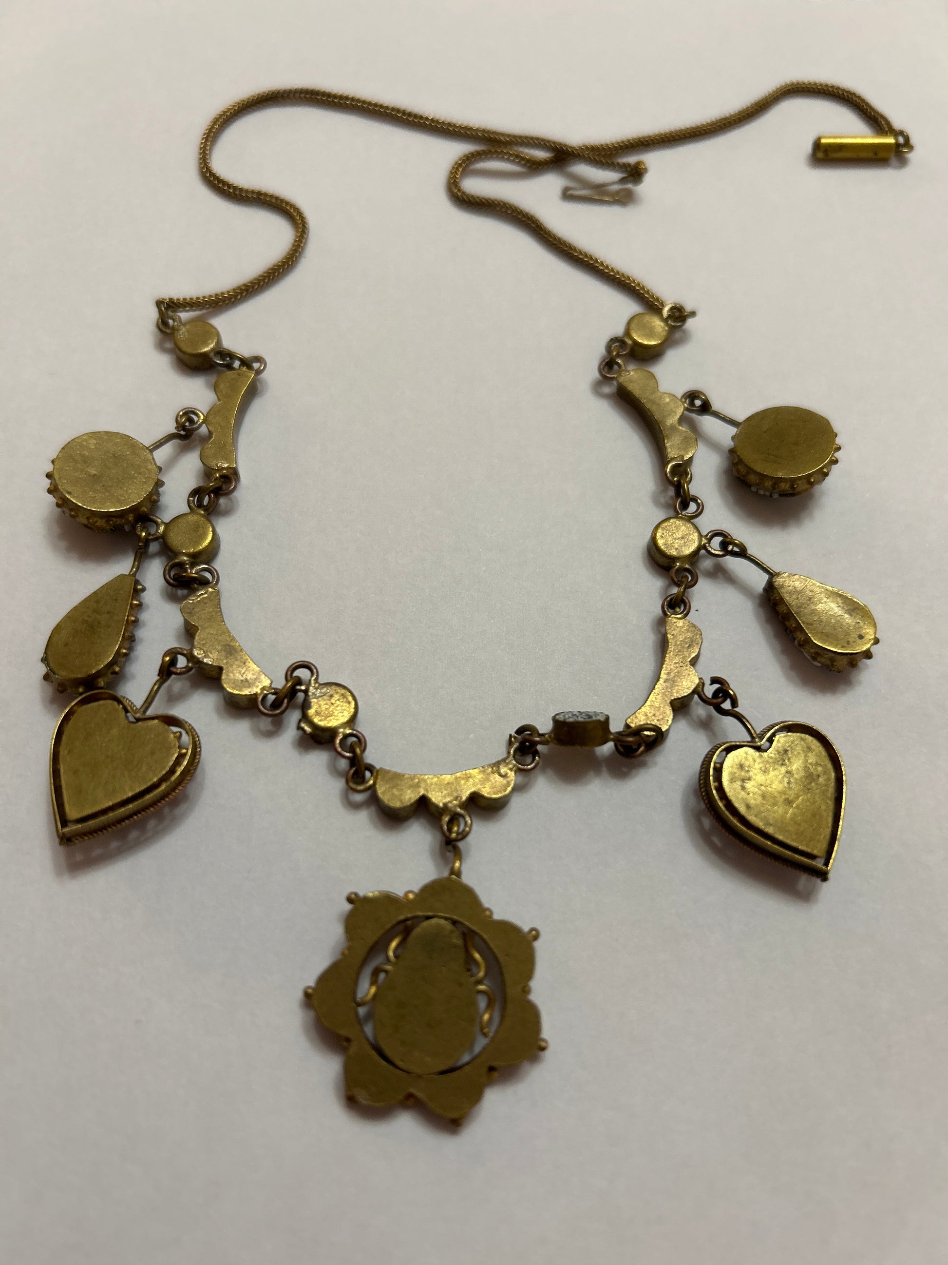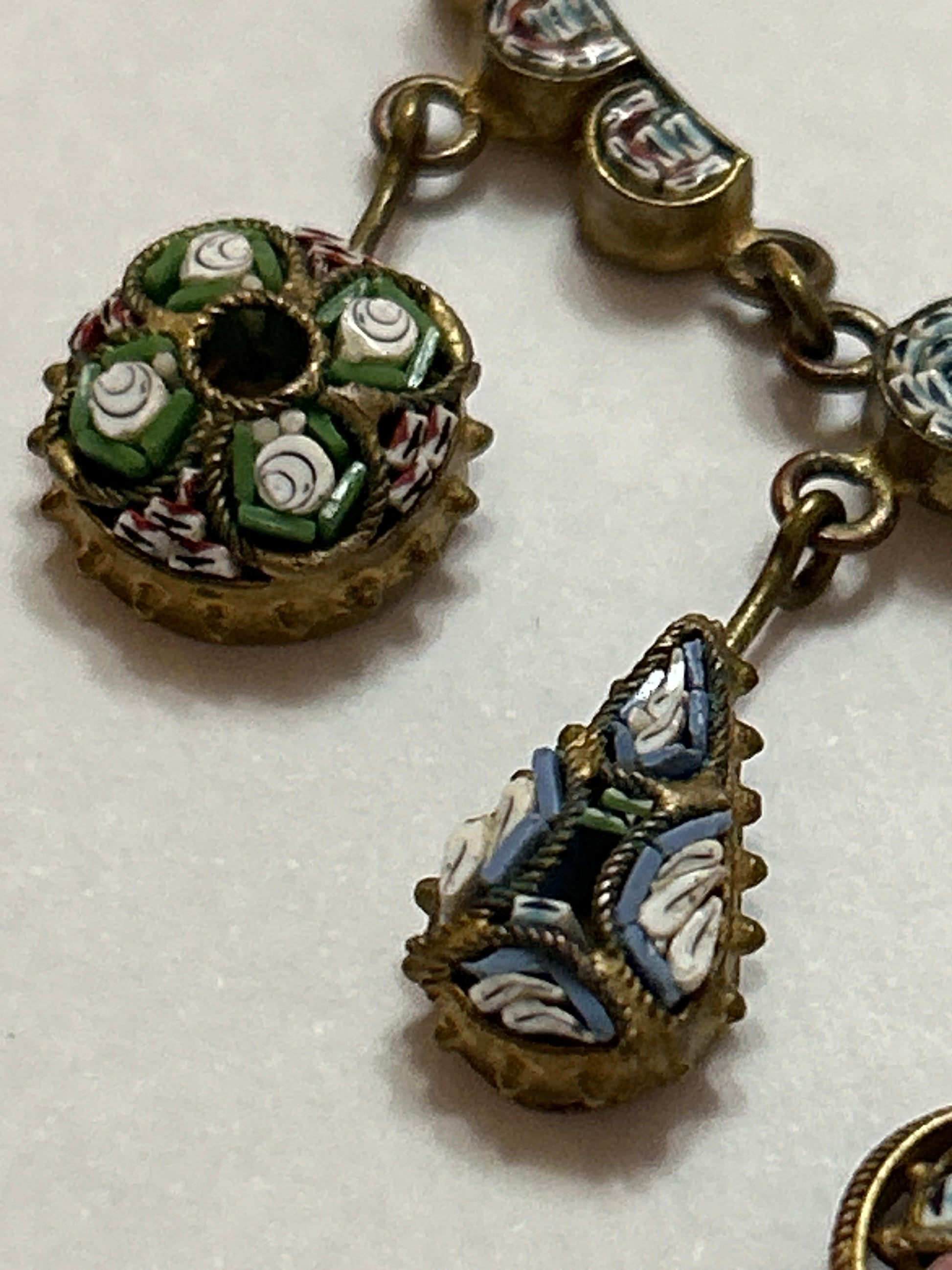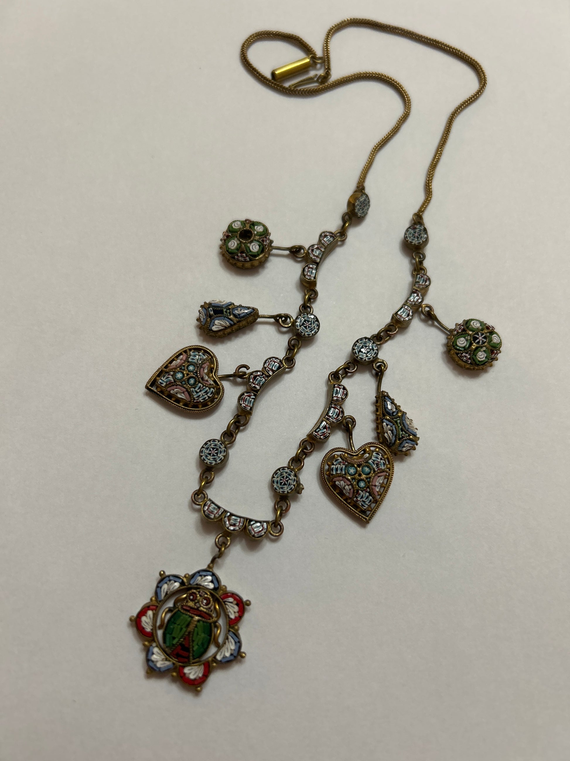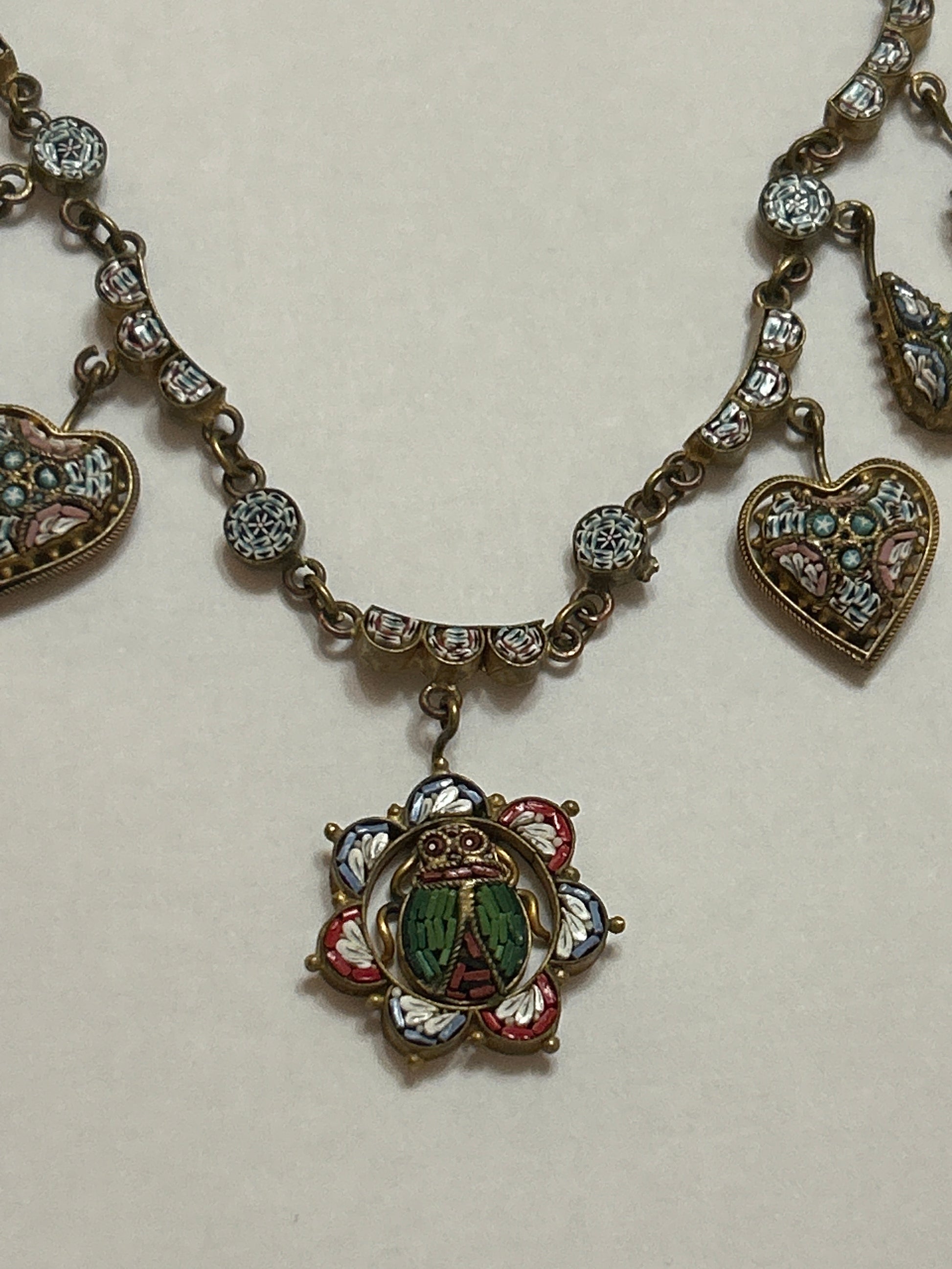 Antique Micromosaic Festoon Necklace With Scarab Beetle Rare
