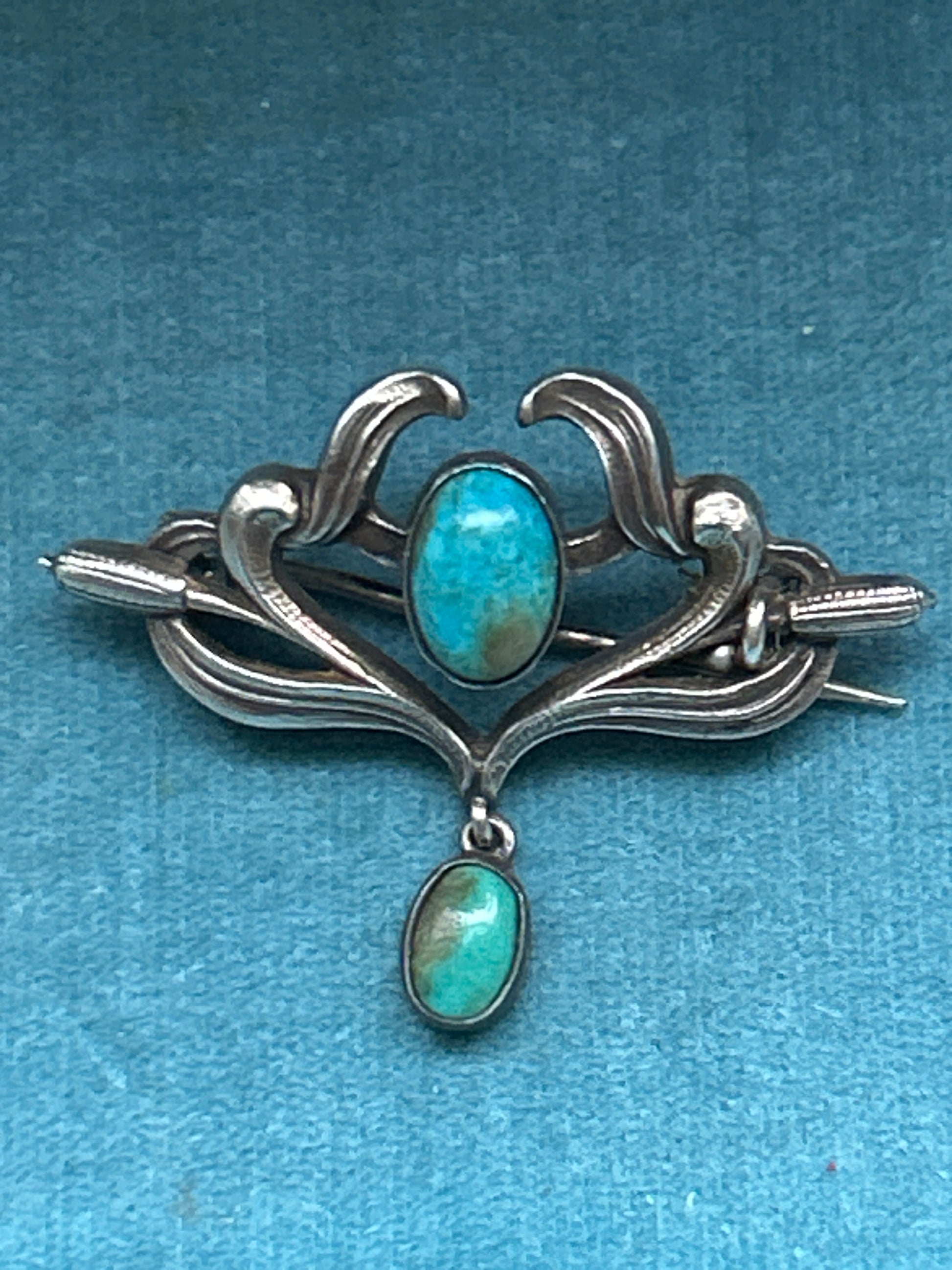 Here for you is this stunning Art Nouveau turquoise brooch.