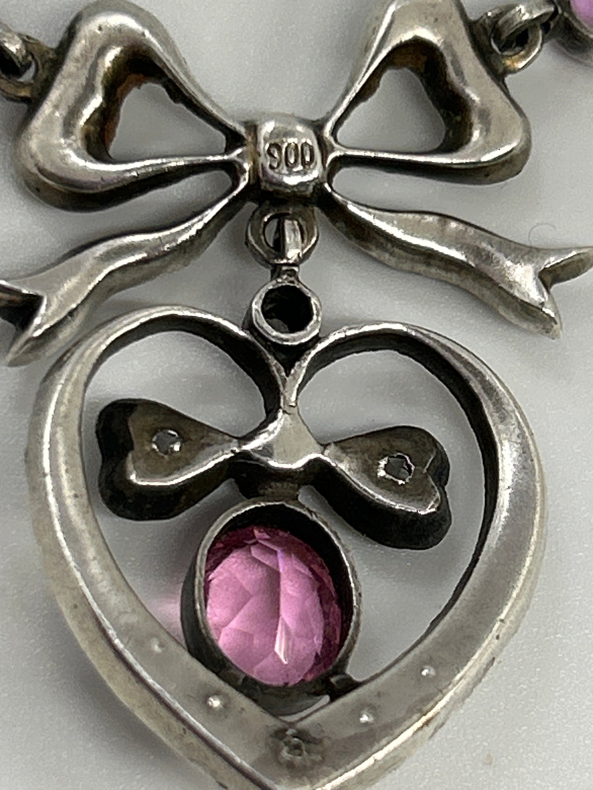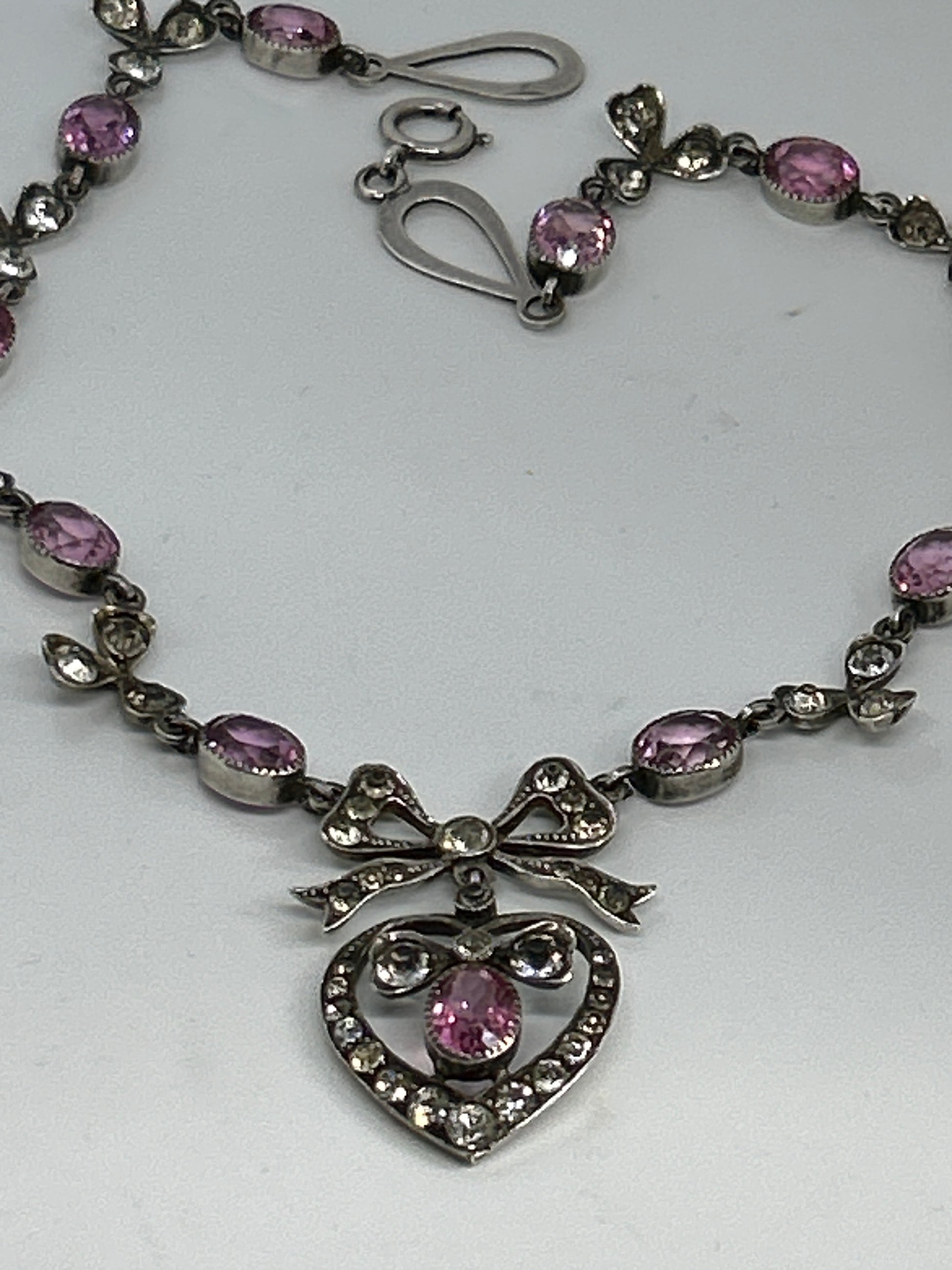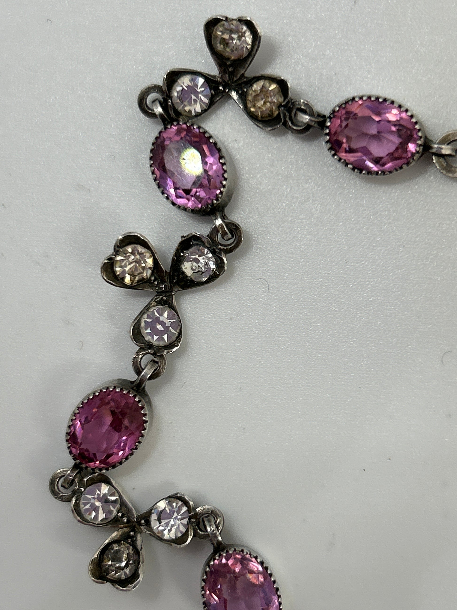 Antique Pink And Clear Paste Necklace Dating 1900. Marked 900