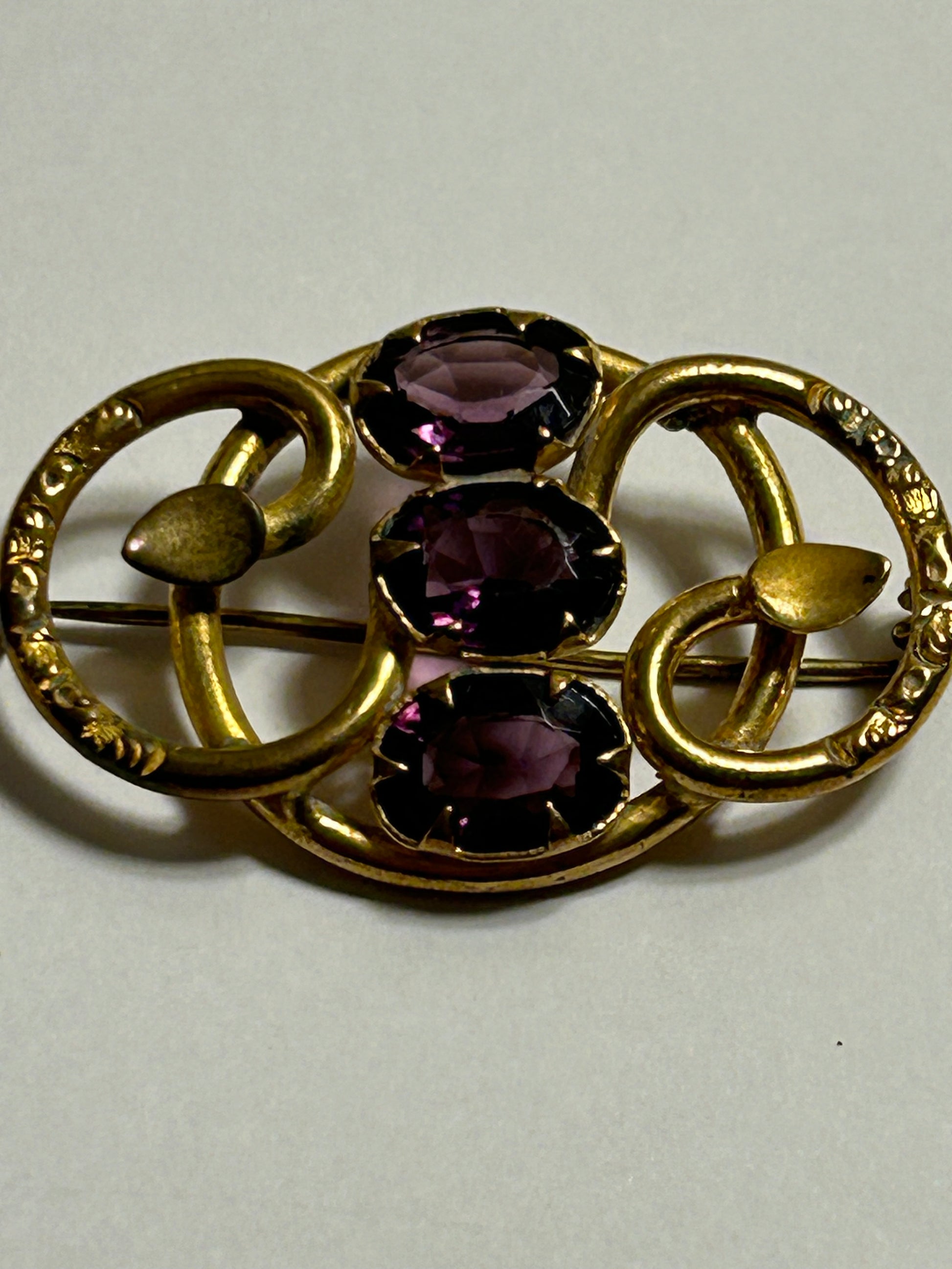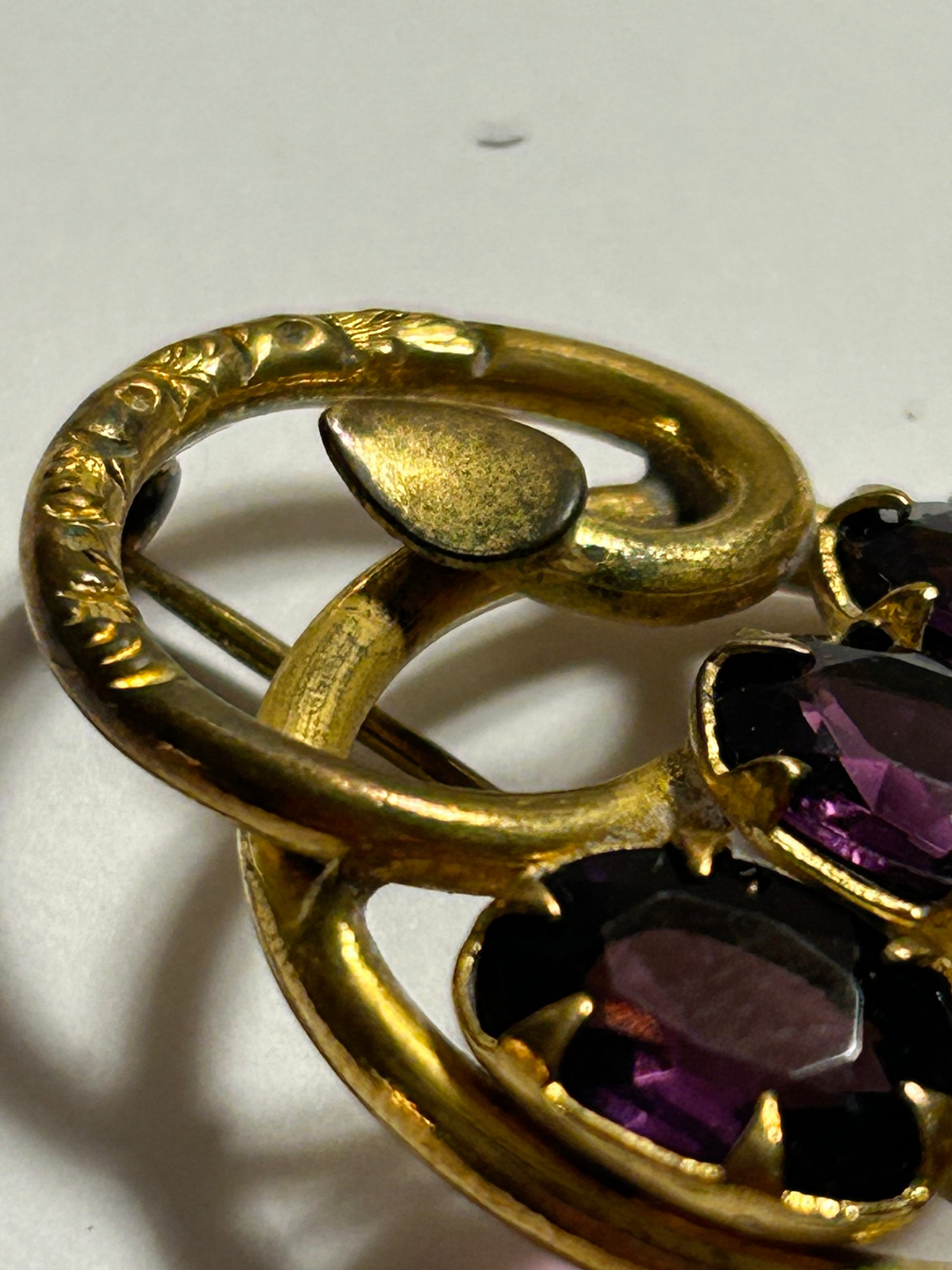 Antique Victorian purple stone brooch love knot