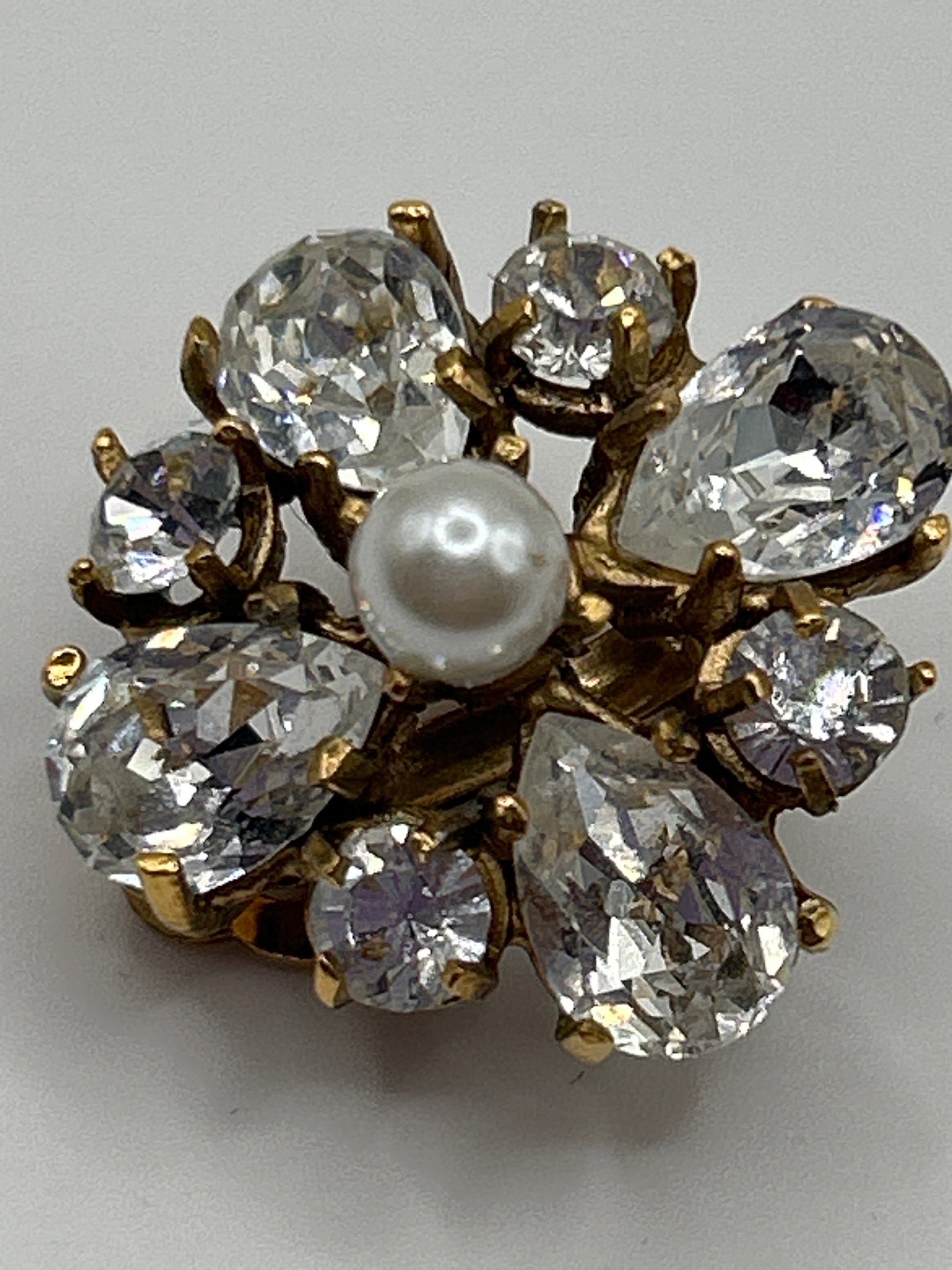 These stunning earrings have pretty flower shaped glass crystals with a faux pearl in the middle.