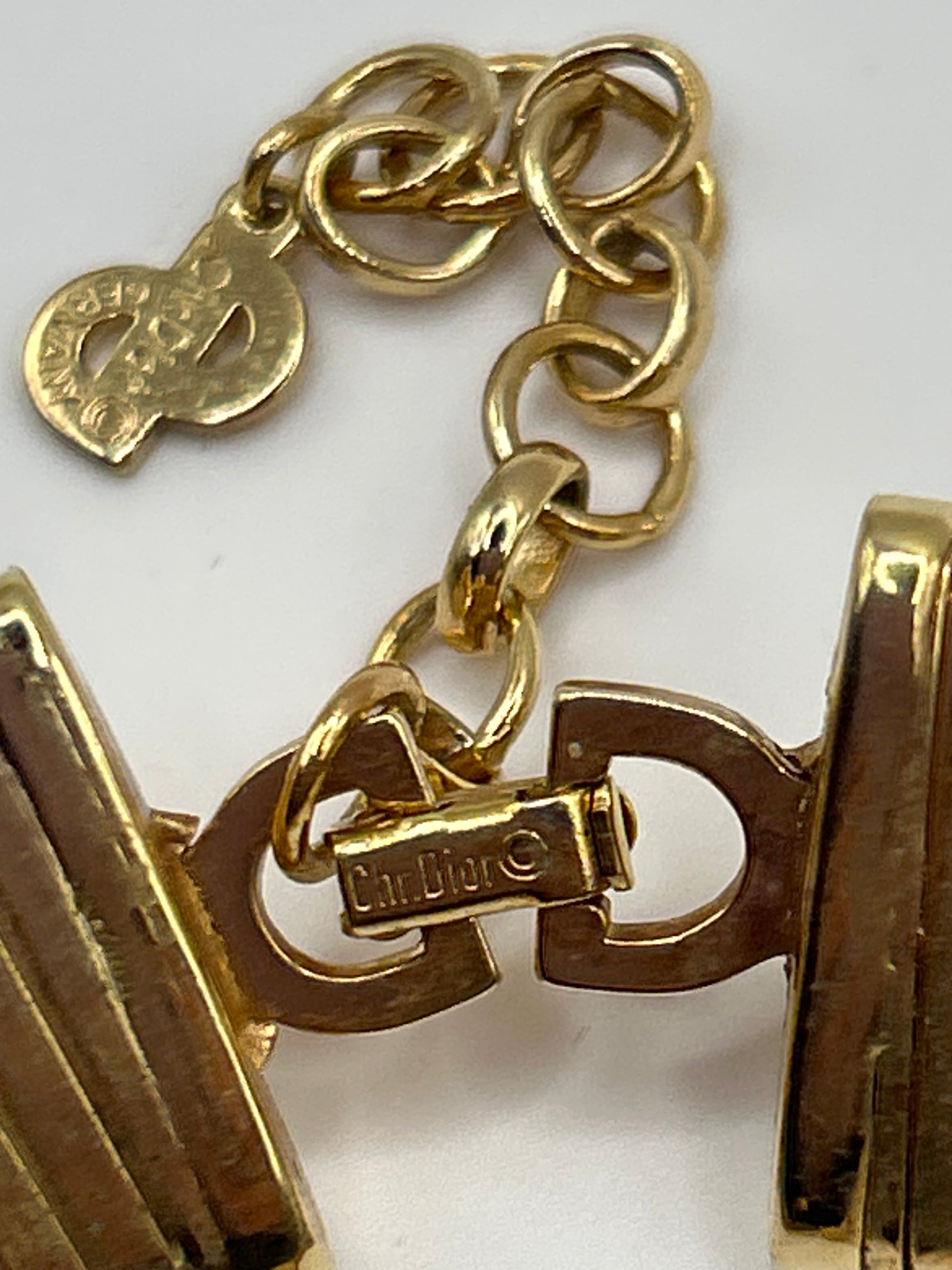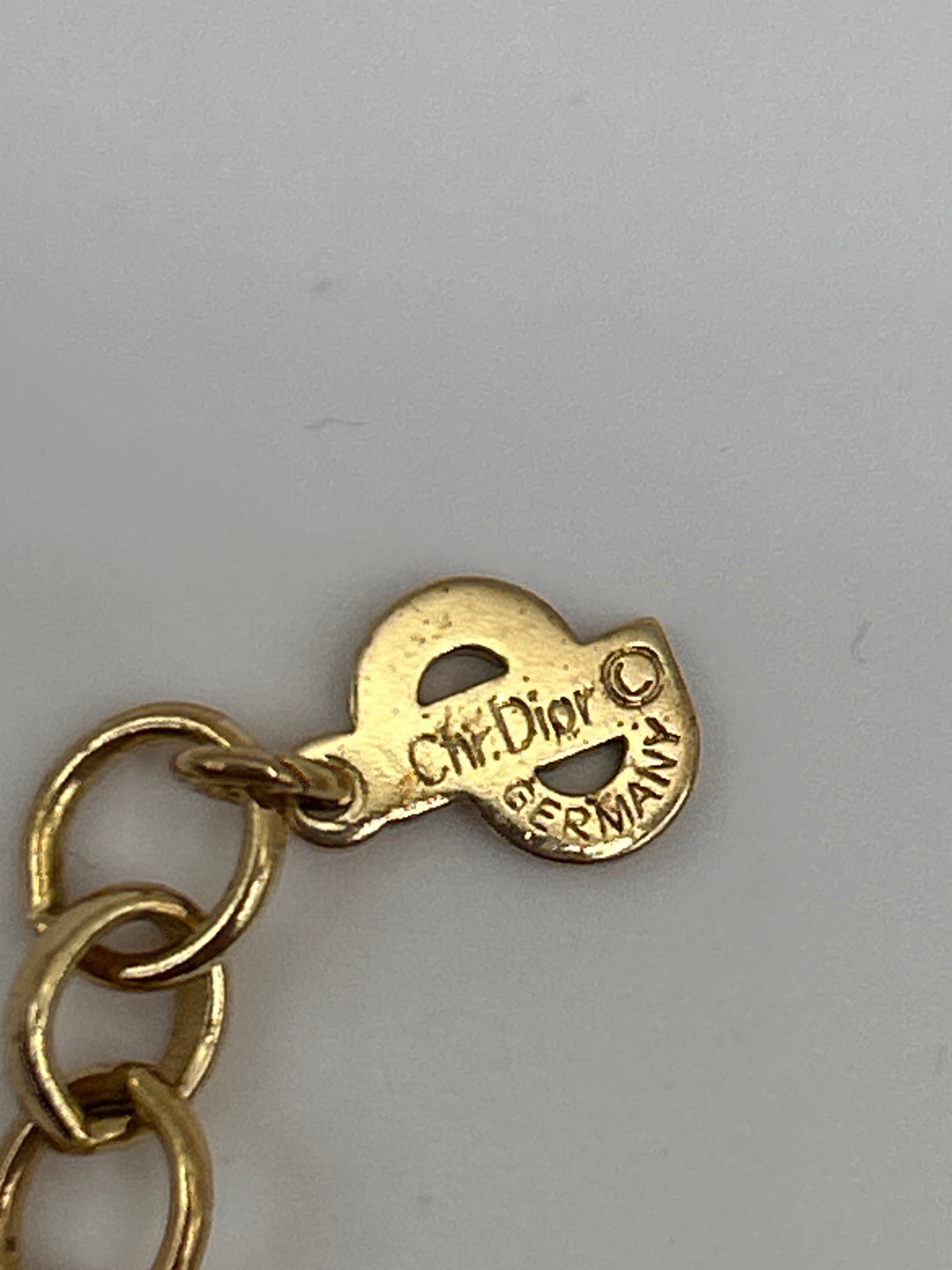 Christian Dior Vintage Necklace Cream Enamel & earrings with striking blue cabochons.