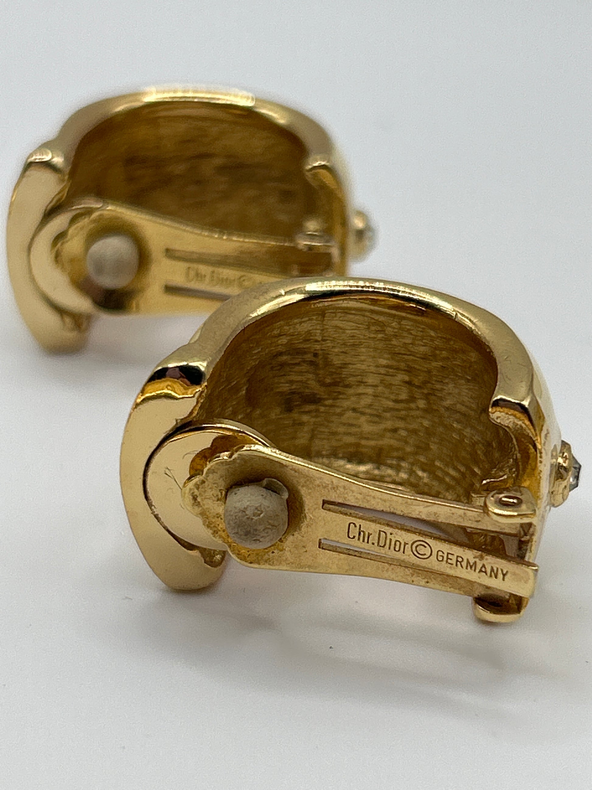 The earrings are signed on the clips. They are a curved design and measure 2 inch from top to bottom.