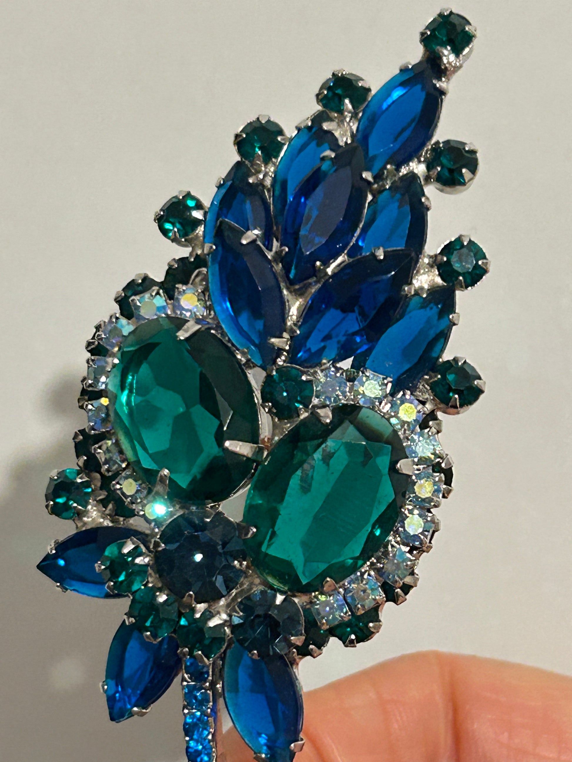 DeLizza & Elster Juliana Book PiecePaisley Floral Brooch. Beautiful Green Glass