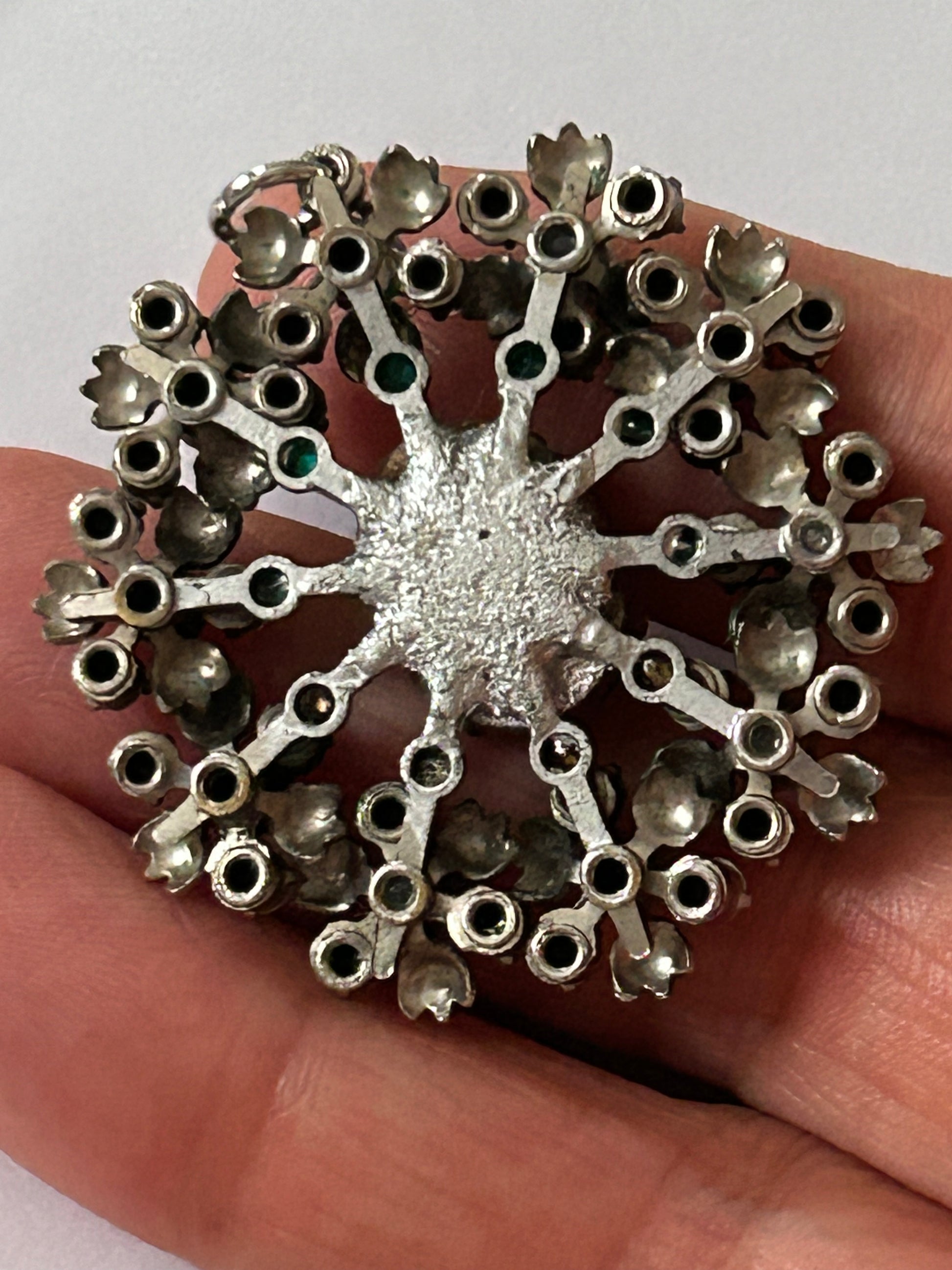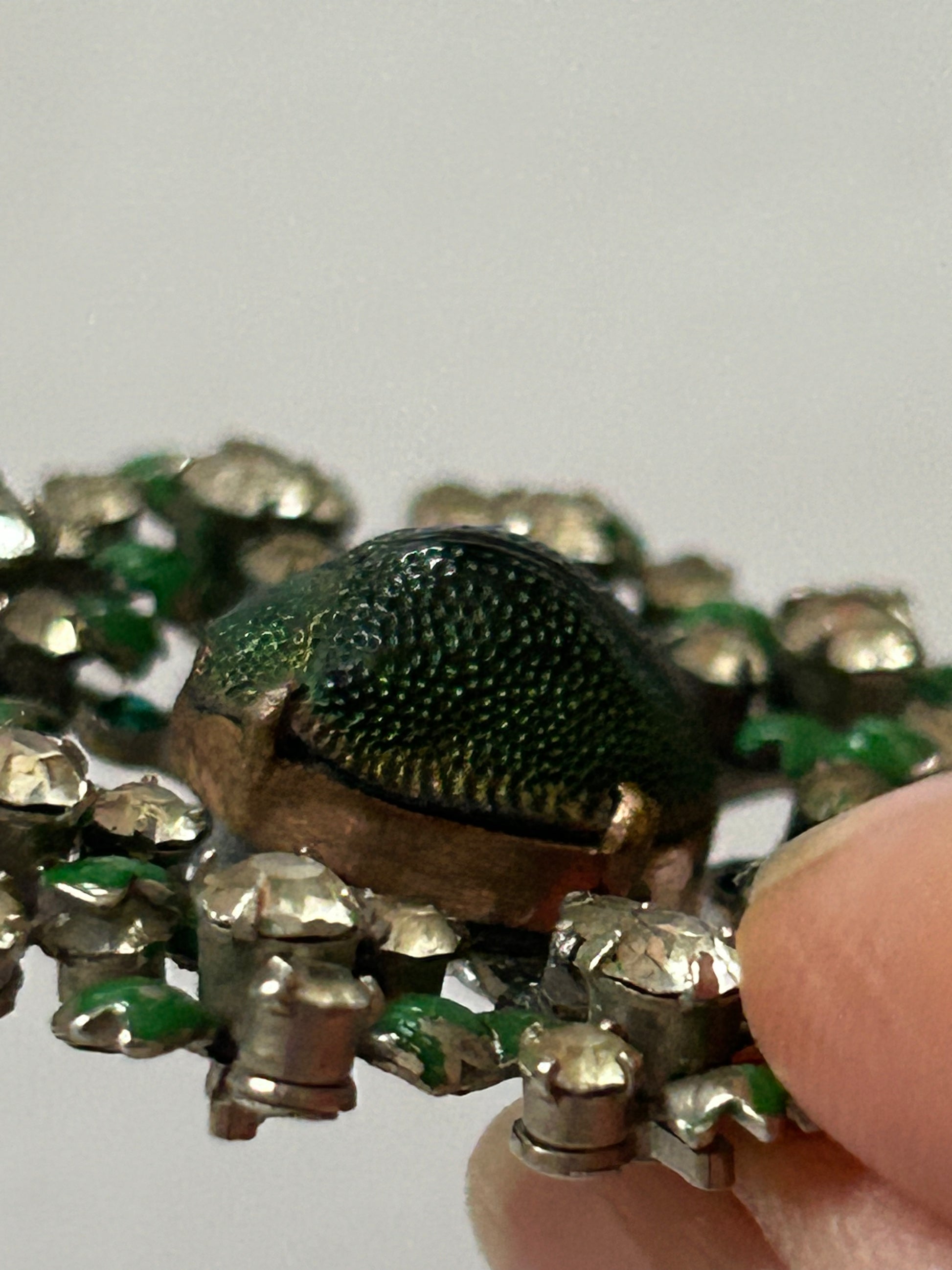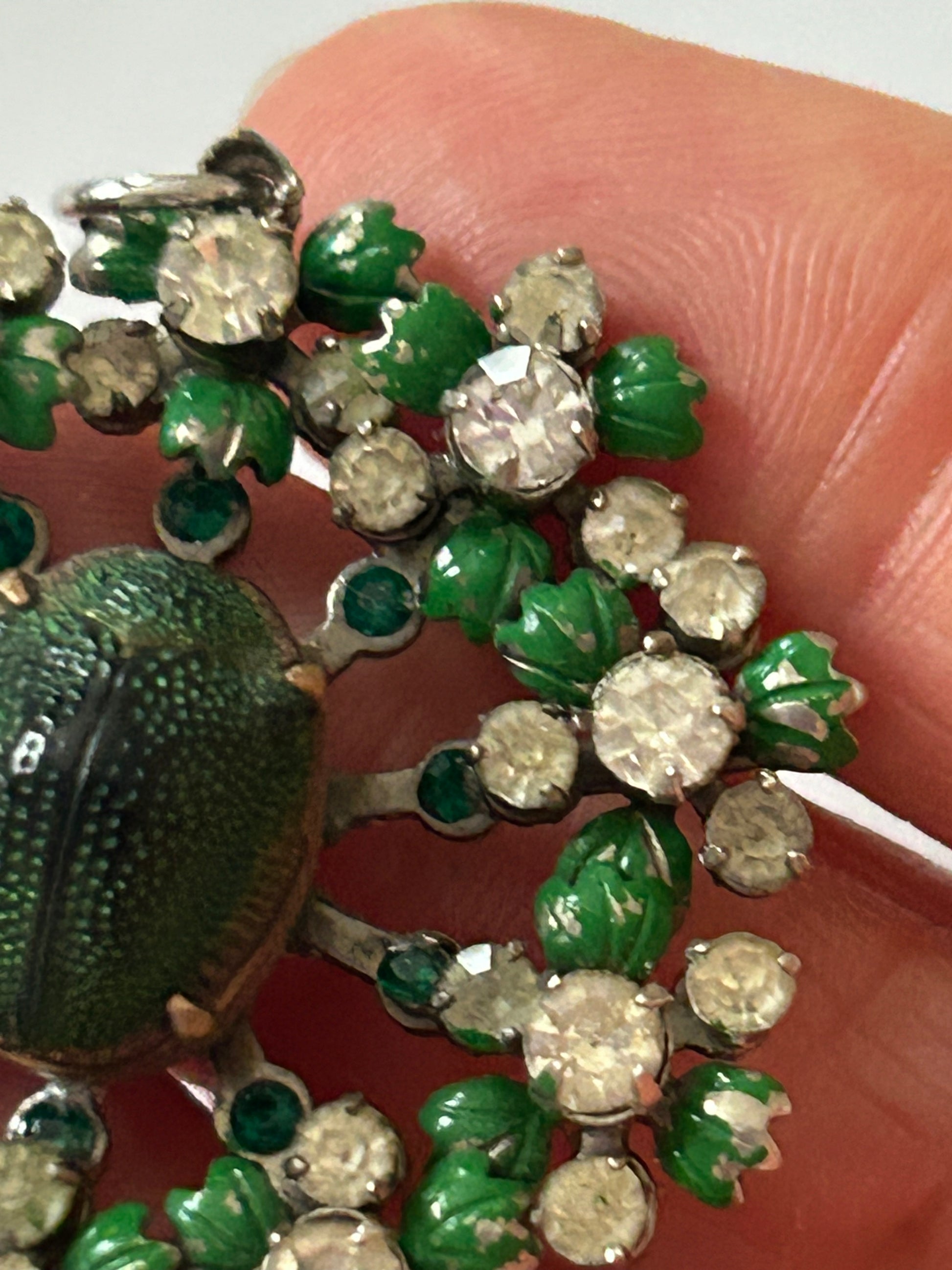 Rare Antique Victorian Scarab beetle enamel flower pendant With Crystals.