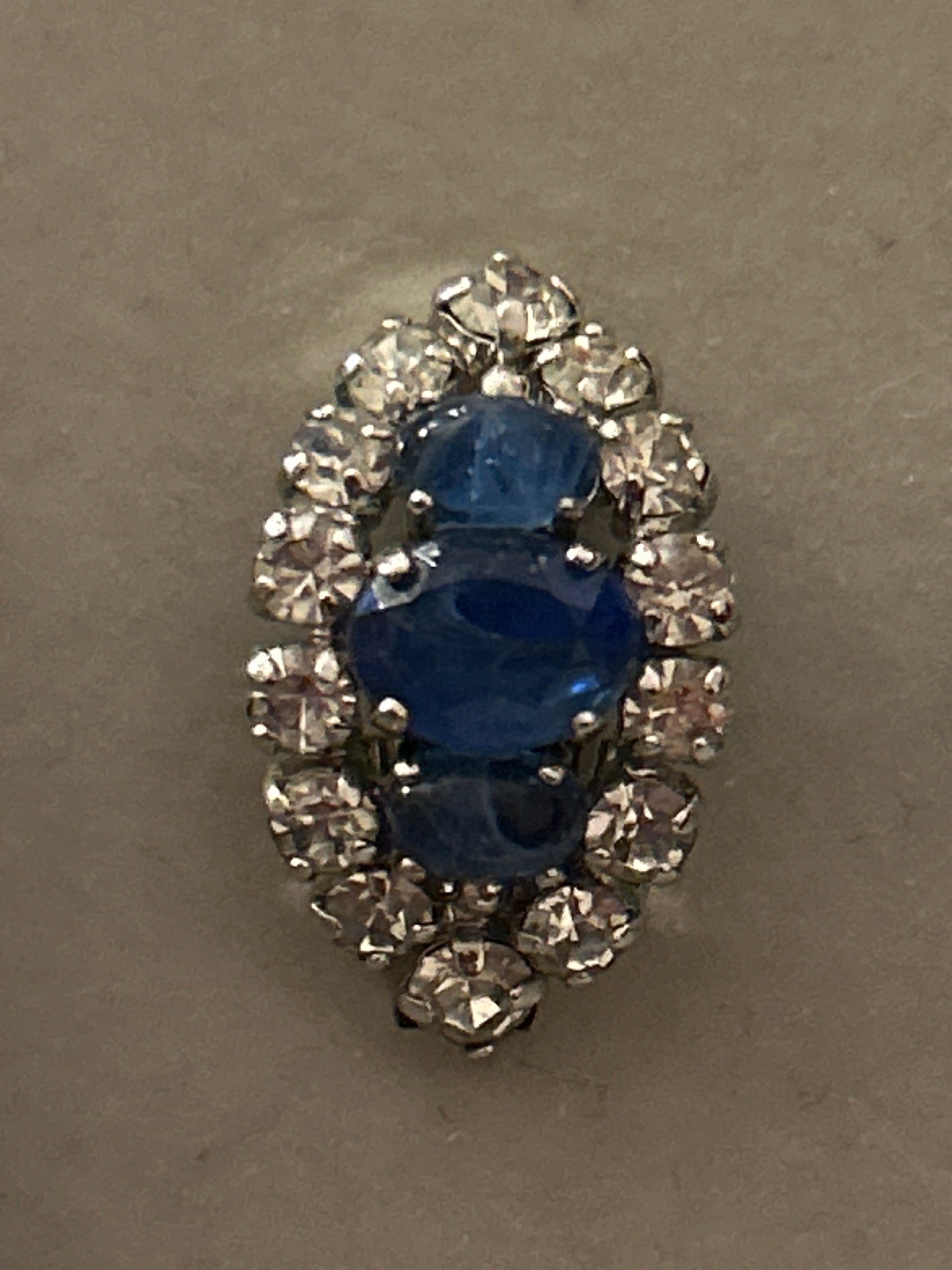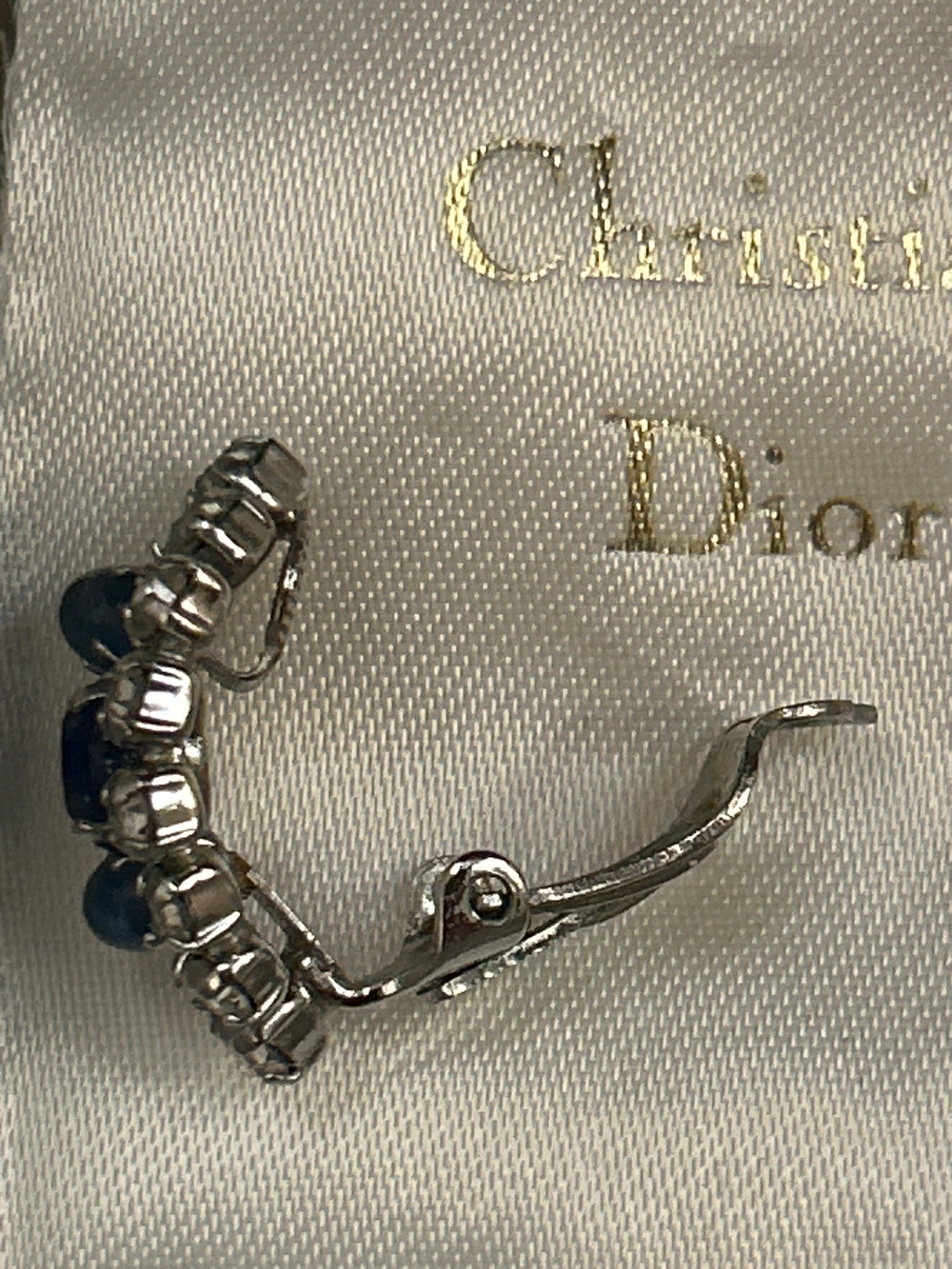 Stunning Blue glass and paste Christian Dior vintage clip on earrings. Dated 1973
