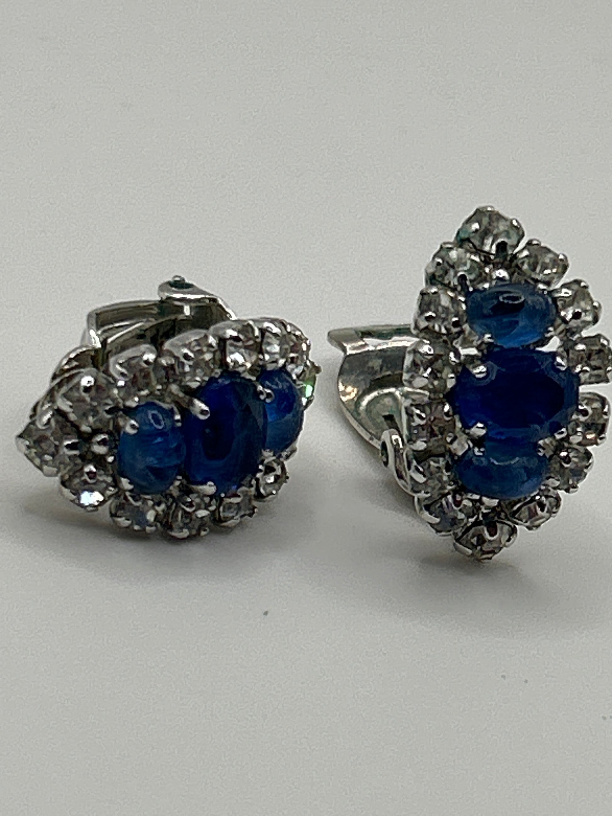 These dazzlers have two blue glass cabochons stones and a glass paste blue stone in the centre.