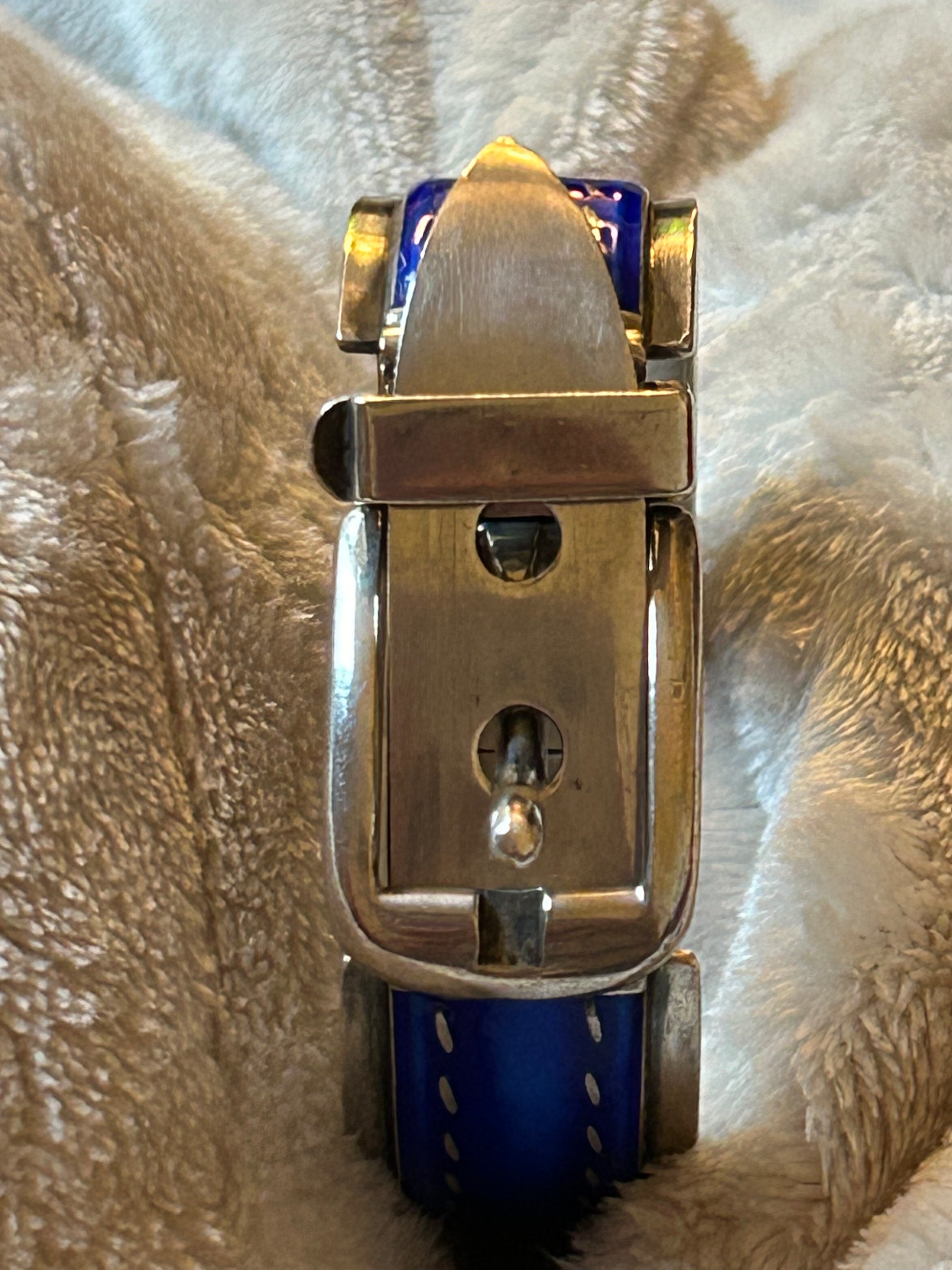 Vintage 1970 Rare Gucci Silver 925 Blue Enamel Buckle Belt Bracelet