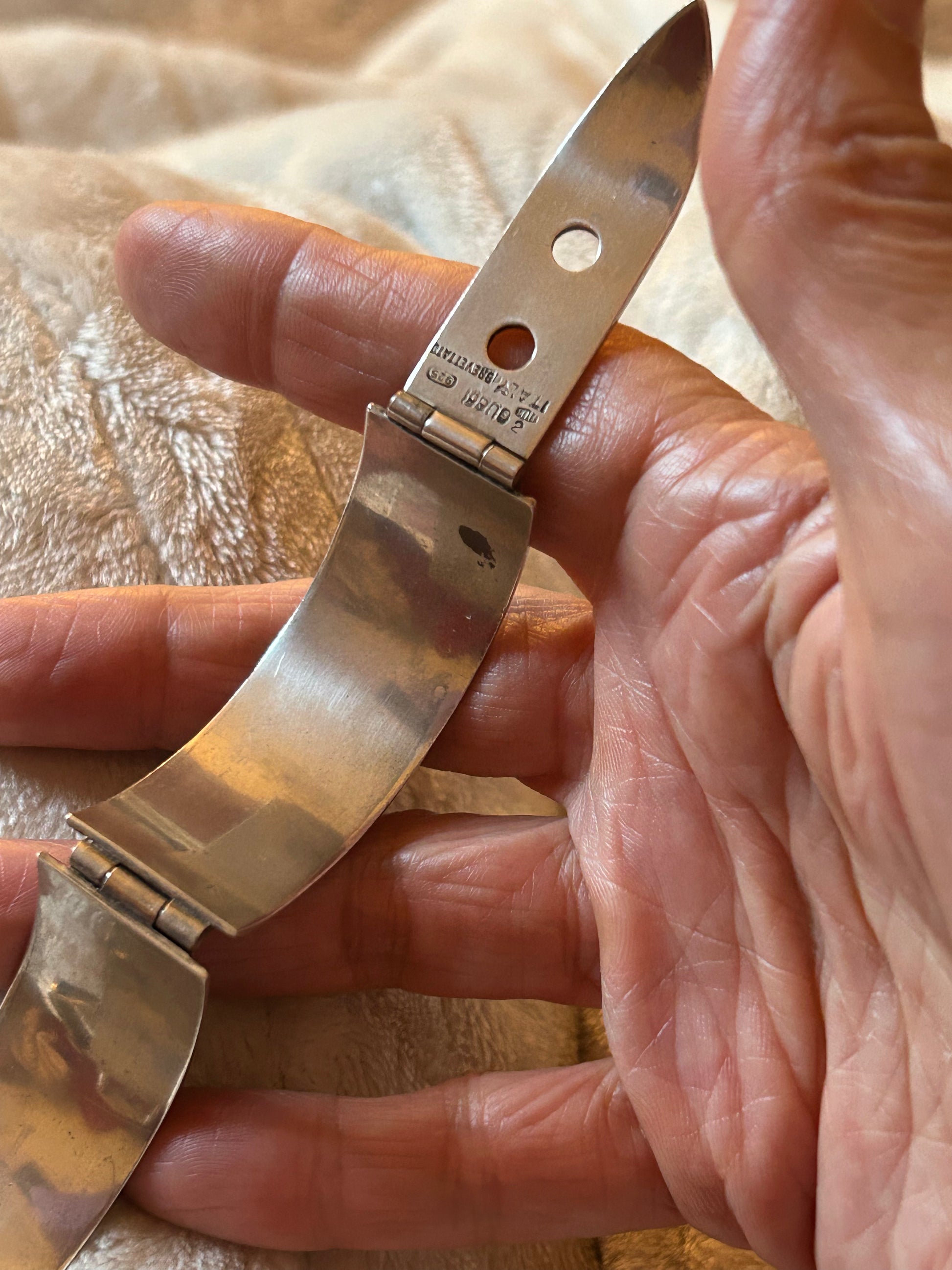 This bracelet is from 1970s. There are some places where the enamel has worn, which I have photographed .
