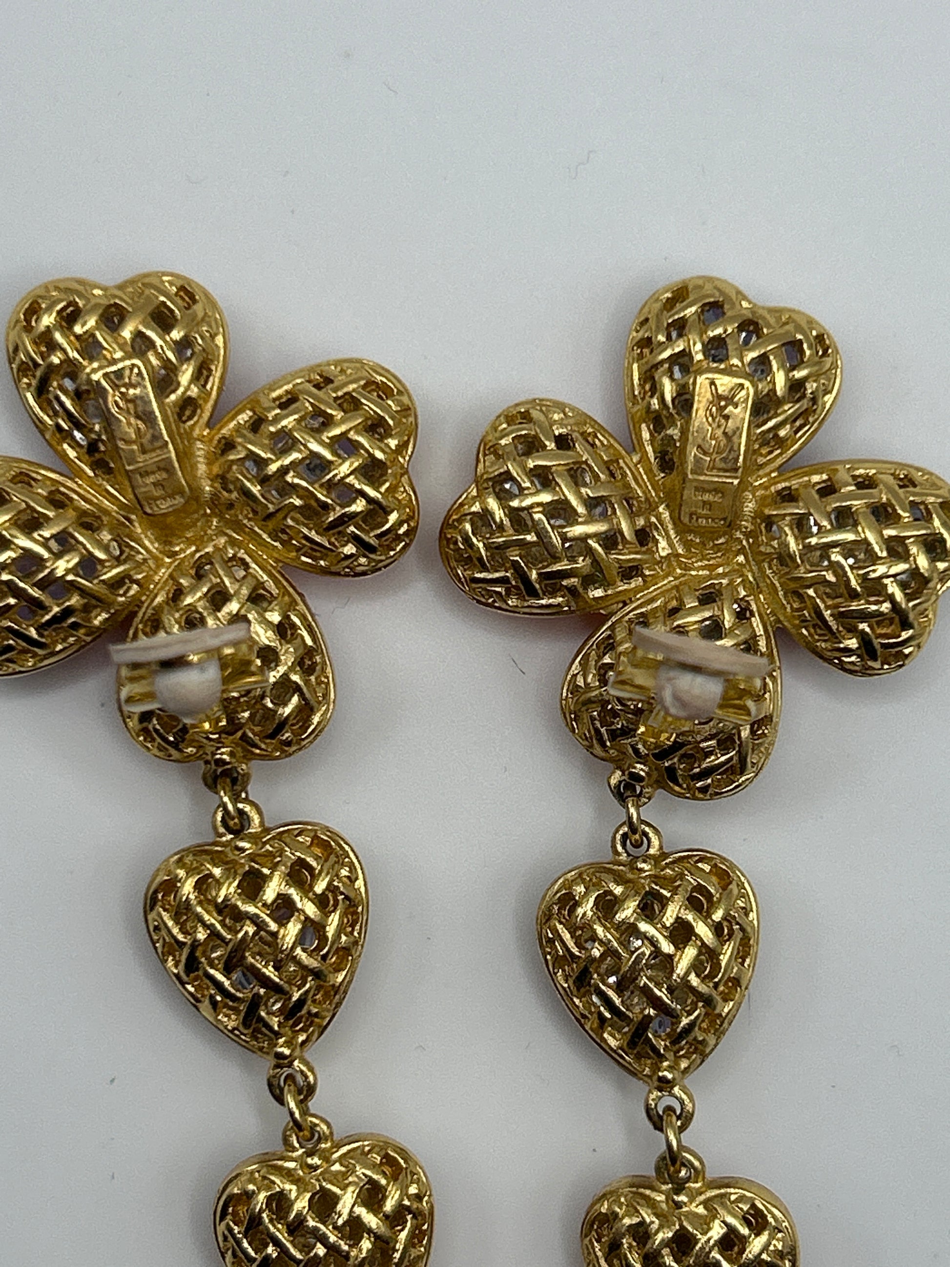 Yves Saint Laurent Vintage Glass Heart Drop Dangle Earrings